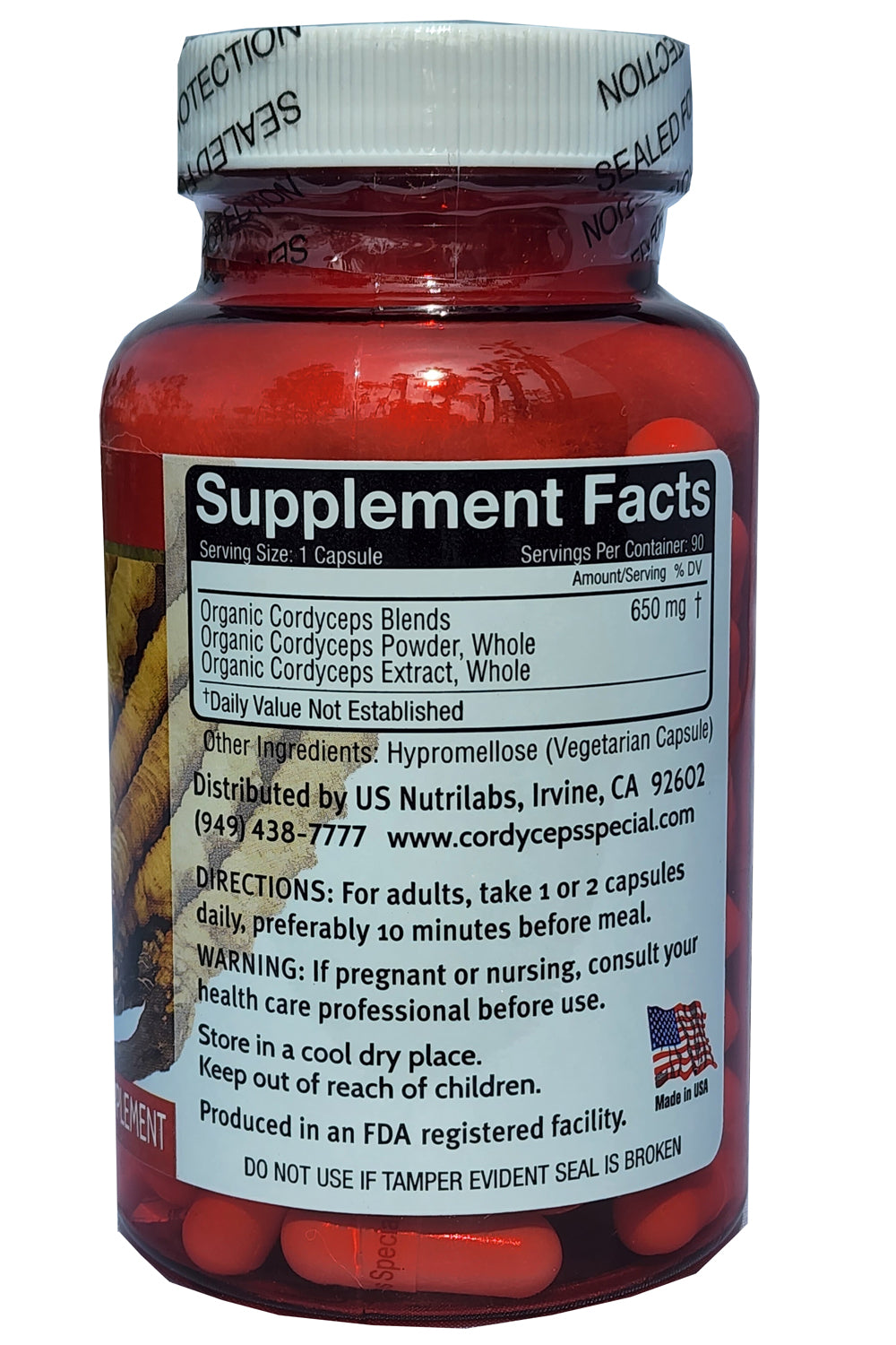 Cordyceps special has been traditionally used in Asia as an immune tonic. Physical fitness enthusiasts and professional athletes have discovered that Cordyceps may have the effect of increased oxygen uptake, supporting higher endurance levels.* People have also found that Cordyceps supports healthy sexual functioning.*